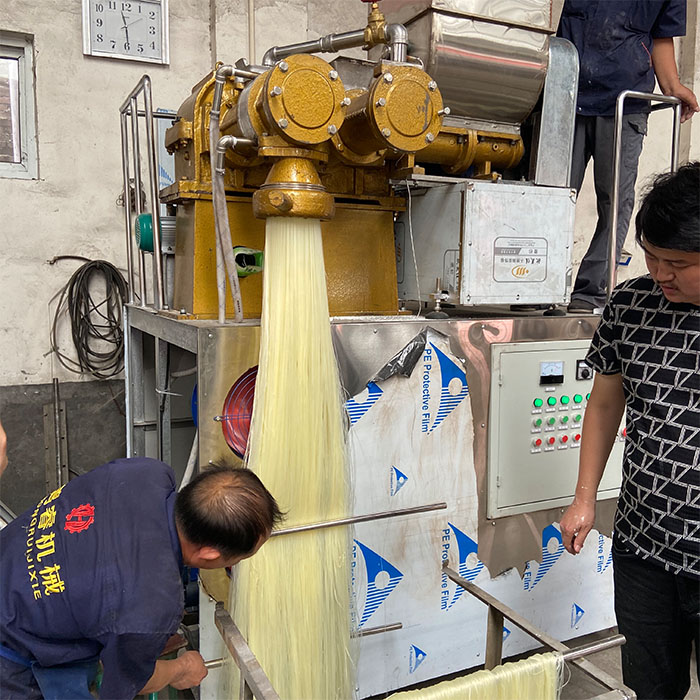 600型米粉機徹底改變了作坊式生產米粉的傳統(tǒng)模式,免除了“搓粉”等繁瑣工序,在我國米粉生產歷史上取得跨越性的技術革新。該米線機生產的米線,屬純天然食品,外觀潔白光滑、晶亮剔透、條形挺直、粗細一致、久泡不散、口感爽滑、營養(yǎng)豐富。不僅可內銷,更可大量出口。